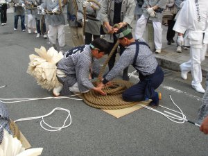 木遣りの皆さんによる綱巻 旧慶友病院前