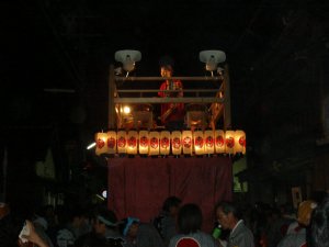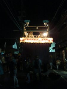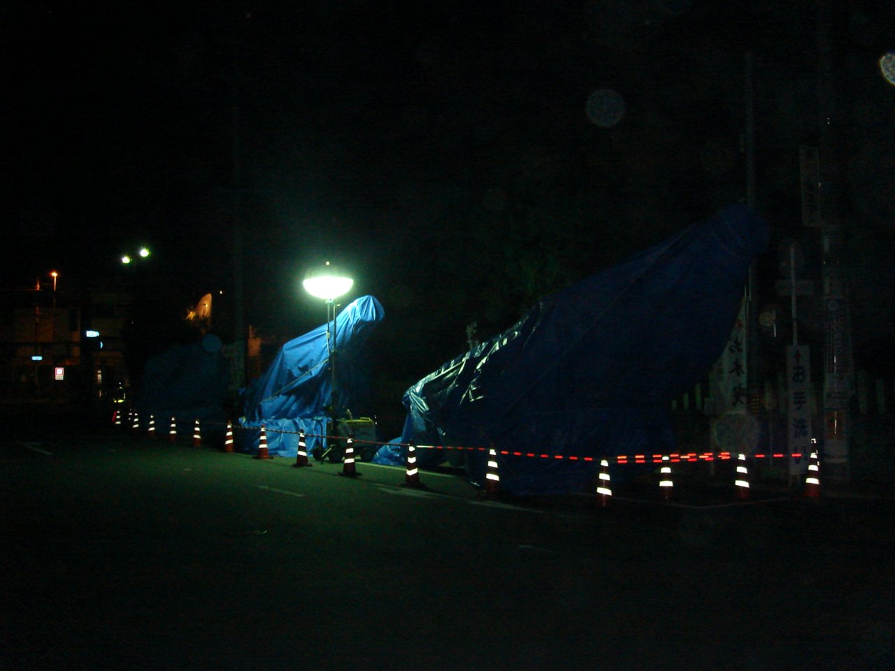 ブルーシートが掛けられた奉曳車 高柳商店街のガンダム