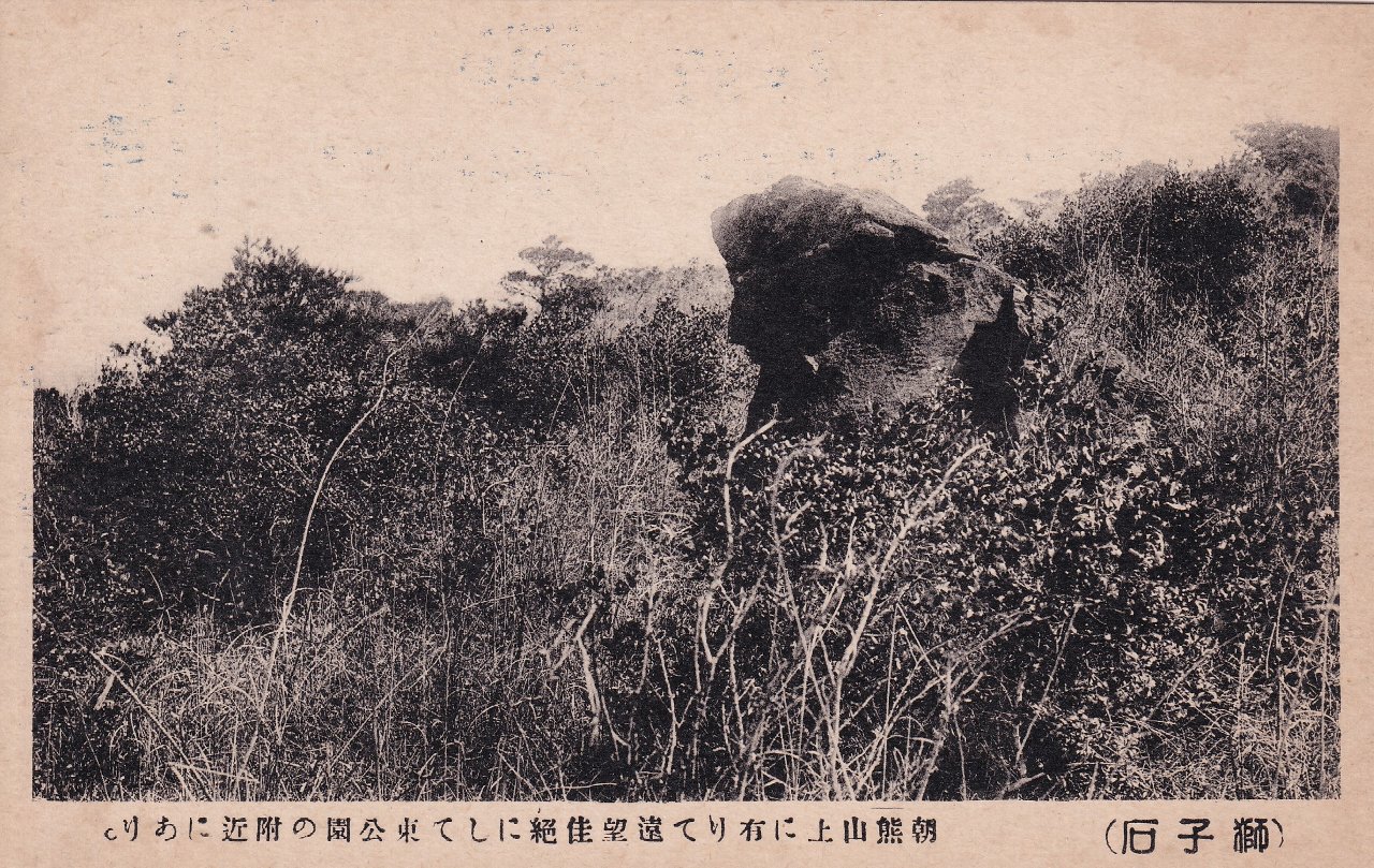 右:獅子石 朝熊山上に有りて遠望絶佳にして東公園の付近にあり。