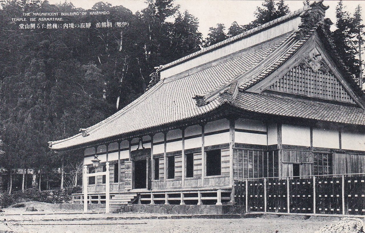 右画像の開山堂は明治30(1897)年に立てられました。当山中興の祖である仏地禅師の命日に行われる山忌には大勢の参拝者が参籠するそうです。伊勢朝熊名所図絵裏面の説明にも「学生・在郷軍人・その他団体のお望みにより休憩・宿泊の需めに応じています。客室湯殿の設備整い、同時に一百人外のお泊まりの出来る準備がしてあります」との説明があります。