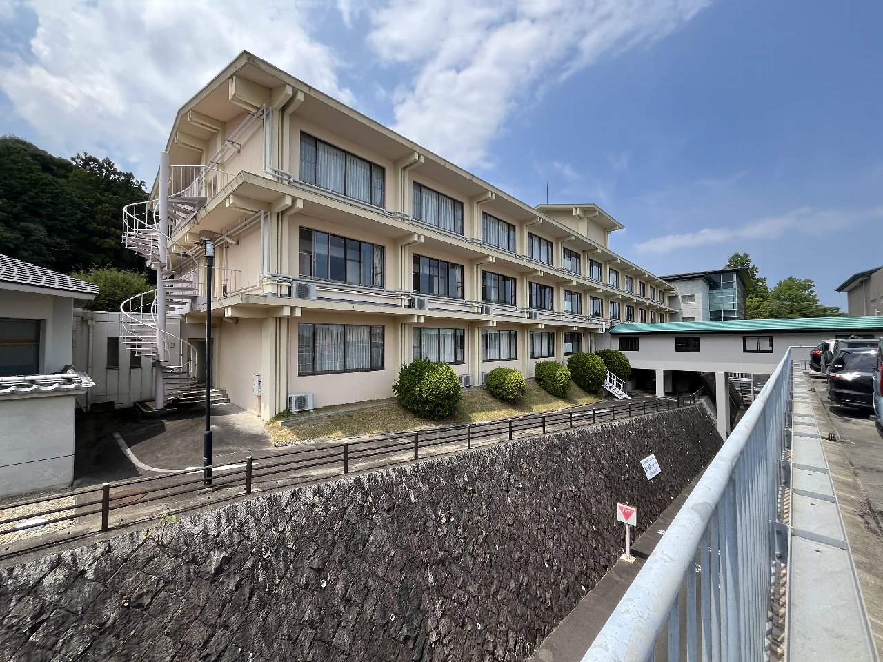 左:駐車場 中:本館 右:西館