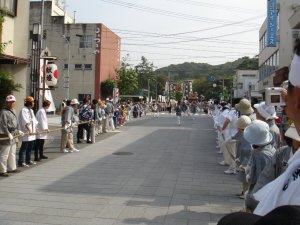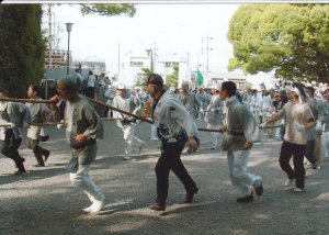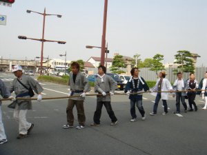 木遣りの皆さんによる綱巻 旧慶友病院前