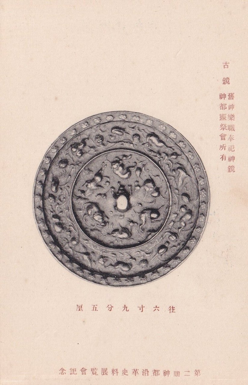 左:古鏡 旧神楽職奉祀神鏡 神都霊祭会所有 往六寸九分五厘
