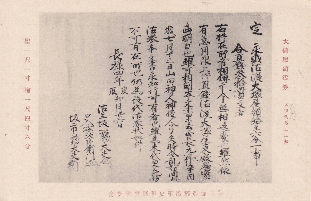 中:大塩屋領沽券 太田久馬三氏所蔵 堅一尺一寸横一尺四寸六分