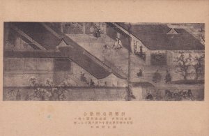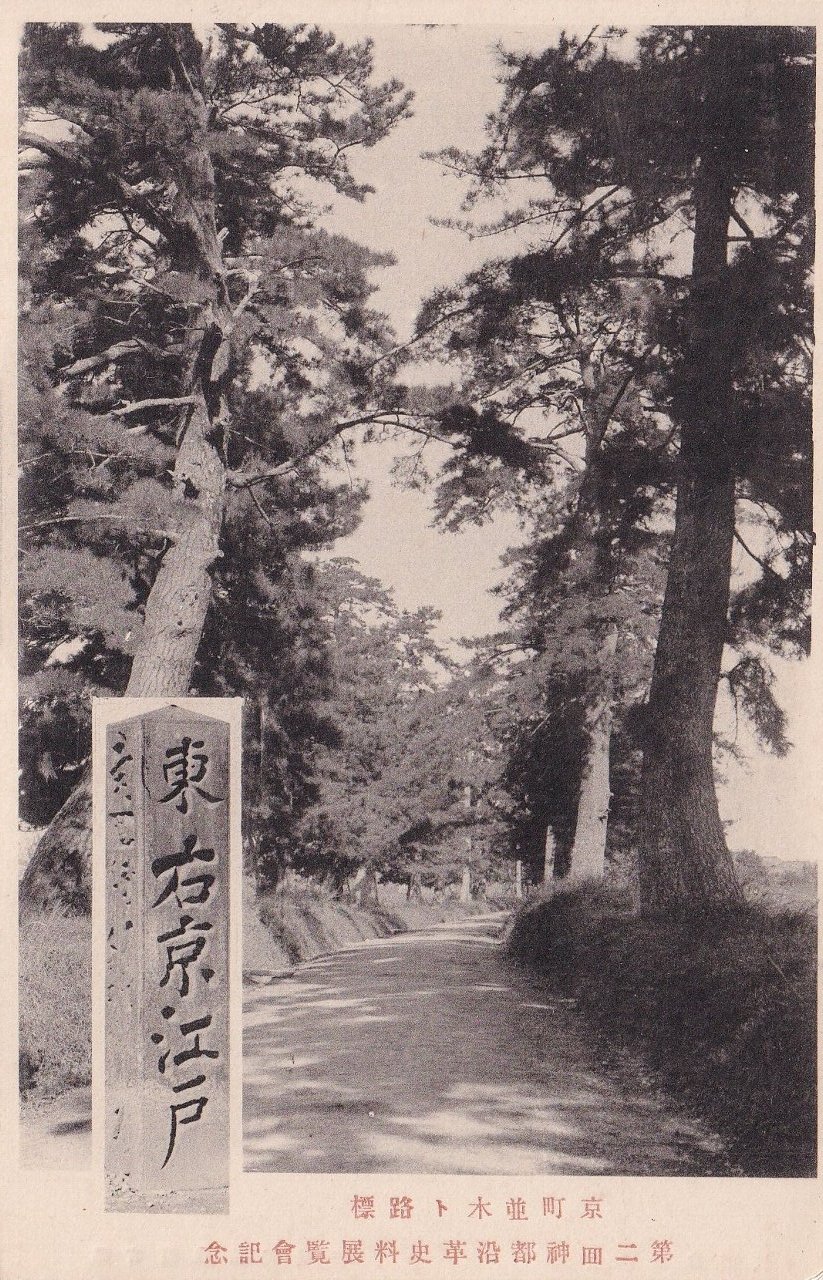 たとうの左側(絵葉書を包むと裏面)には収録絵葉書の目録が記載されています。「五 京町並木と路標」の左には、「京町は宮川つヽみのところ」との注記があります。
