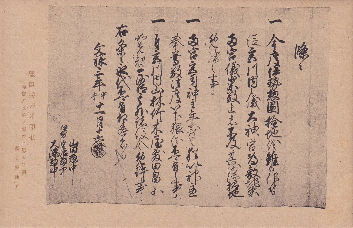 左:豊臣秀吉朱印状 秀吉が文禄の見地に際して下付
