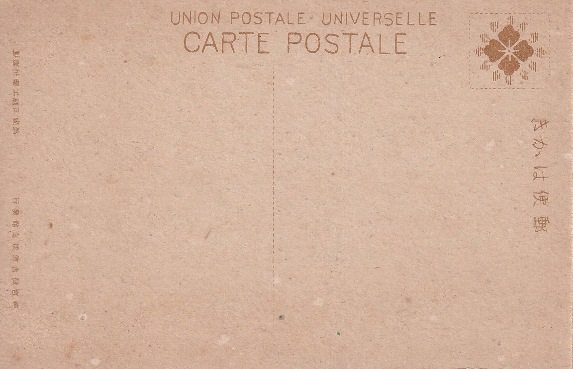 中:絵葉書表面 原寸(長辺14㎝×短辺9.1㎝) 画像左端には「徴古館農業館発行」「東京交友舎謹製」と印字されています。