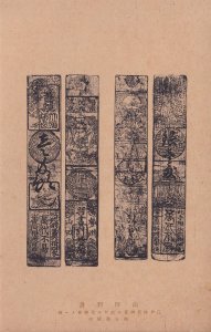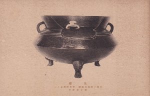 次に、神宮徴古館農業館発行の『神都史料絵葉書』を紹介します。印刷所は東京交友舎です。全ての絵葉書に「第2回神都沿革史料展覧会記念」の見出しが印刷されています。表面の罫線が中央に引かれていますので、大正7(1918)年以降の発行です。たとうには「神宮宝物